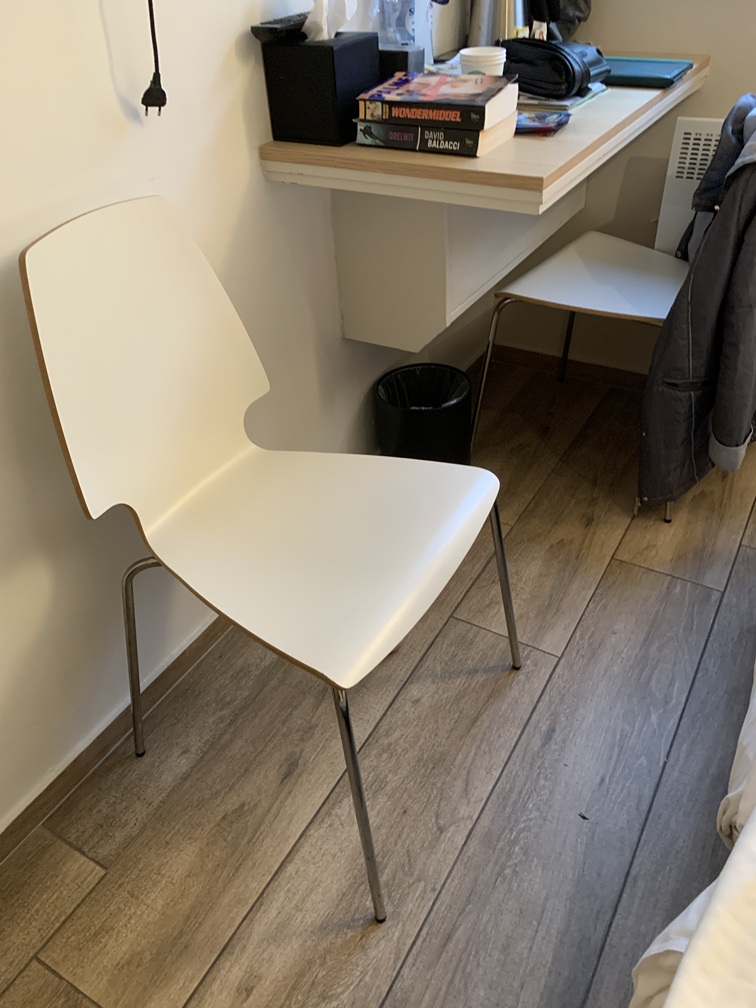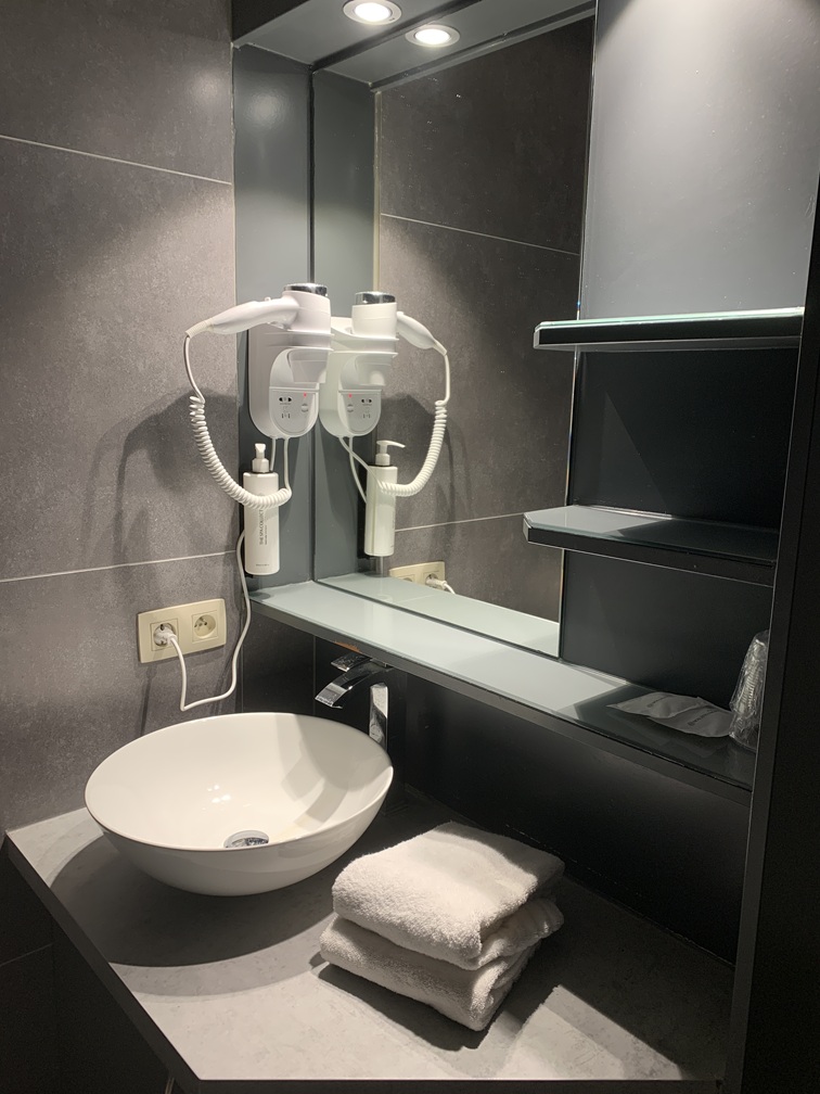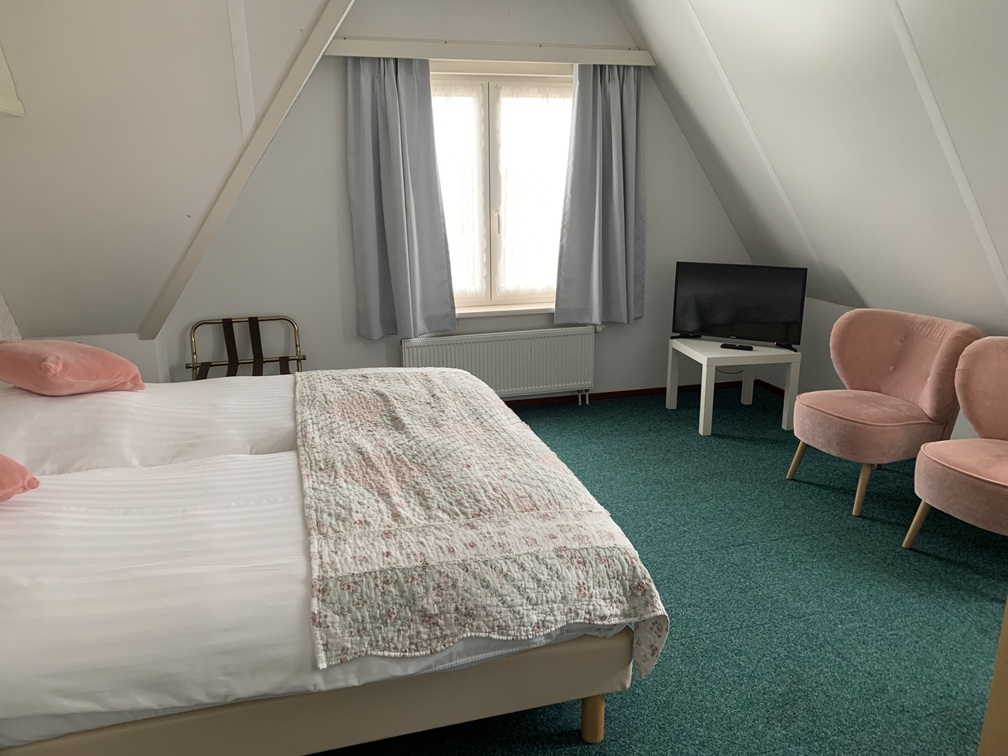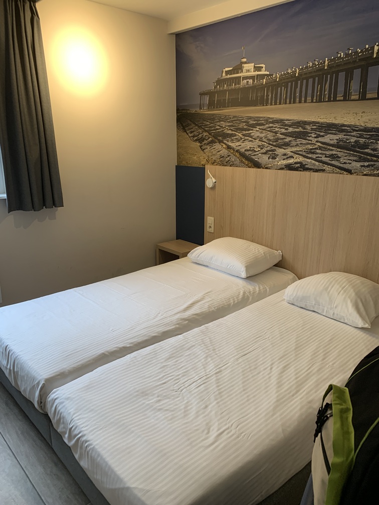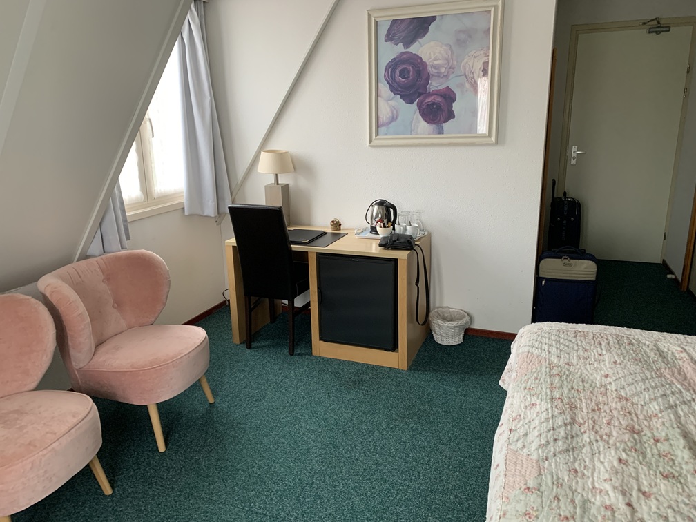 Wij sliepen dus in Paradiso/Noordzee en daar was wel het nodige op aan te merken. De kamer was extreem klein, elkaar passeren was nauwelijks mogelijk en in een hoek hing een plank aan de muur (bij wijze van bureautje) met twee houten stoelen, die je steeds moest verschuiven om er voorbij te kunnen. Het bed lag wel lekker, maar was veel te laag, wat de in- en uitstap erg ongemakkelijk maakte. Er was ruim voldoende (veel te veel eigenlijk) kastruimte én een kluisje. Vooral de badkamer was echt niet goed!!. Zonder hier in details te willen treden, hebben we die het laagst mogelijke cijfer gegeven bij de beoordeling. Klagen bij de receptie kon niet, want die was vrijwel de hele dag onbezet, maar of het wat uitgehaald zou hebben, dat betwijfelen wij, want van andere hotelgasten hoorden wij soortgelijke klachten. Tot zover het hotel.