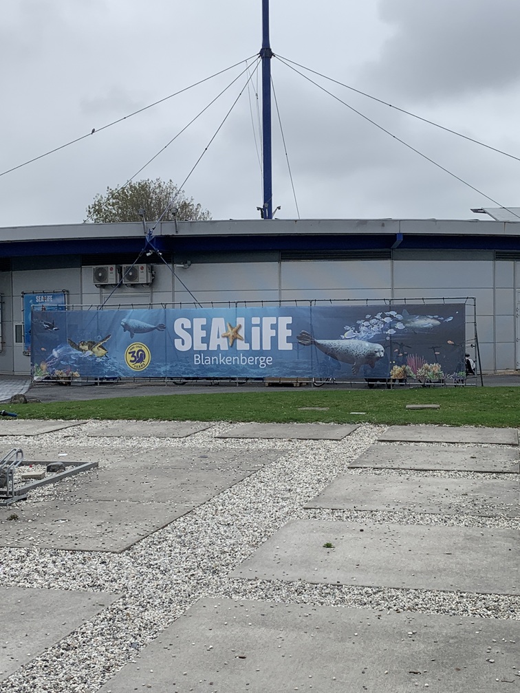 Dinsdag 14 oktober. Voor het ontbijt moesten we naar "de buren". Dat was goed, maar niet heel bijzonder, het gebruikelijke aanbod van brood en broodjes, beleg, eieren, joghurt en ontbijtgranen, koffie/thee/melk en sapjes. De lunch die we later op de dag in dezelfde ruimte hebben gebruikt, bleek niet veel af te wijken van het ontbijt. Na de lunch zijn we naar Sealife gewandeld, waarvoor we thuis al kaartjes hadden gereserveerd via Social Deal. Vissen in alle soorten en maten, pinguins, zeehonden, otters en allerlei andere dieren die in en/of rond het water leven. Voor de echte beleving een glazen tunnel onder het water. Na het sealife-bezoek zijn we de pier opgewandeld, die bij vloed 350 meter de zee in steekt, maar bij eb vrijwel volledig op het strand staat. De brasserie op de kop van de pier was gesloten. Vanaf de pier kijk je o.a. uit op de haven van Zeebrugge.