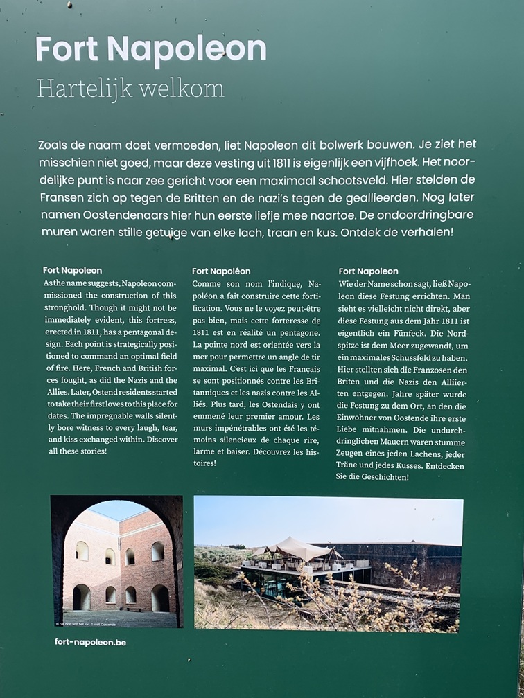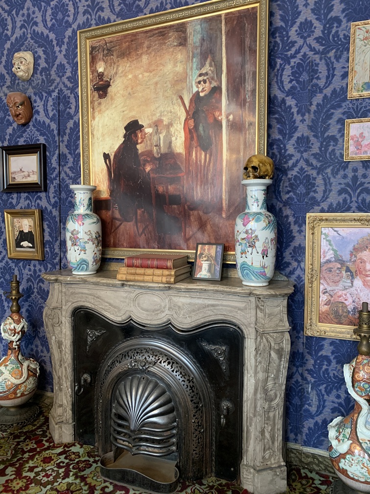 Uitgestapt bij de halte Oosteroever, hebben we 800 meter gelopen naar Fort Napoleon, dat in de loop van de geschiedenis vele oorlogshandelingen heeft doorstaan. Wij kwamen eigenlijk voor het verhaal van het fort, dat hebben we wél gehoord via de audiotour-apparaatjes, maar veel ervan gezien hebben we niet, omdat het fort net nú tijdelijk als decor fungeerde voor de fototentoonstelling Biënnale 2025. Na het fortbezoek terug te tram in en verder naar de halte Marie-Joséplein, waar we eerst geluncht hebben bij Brasserie Cheers en vervolgens op zoek zijn gegaan naar het James Ensorhuis. Ensor (1860-1949) was een kunstschilder en een belangrijke vernieuwer van de moderne kunst in België. Hij groeide op in een souvenirwinkel, die nu nog steeds bestaat als onderdeel van het huis/museum dat wij vandaag hebben bezocht. Hij schilderde veel mensen met doodshoofden en maskers op. Na het museumbezoek hebben we de tram weer opgezocht maar, ondanks dat wij meenden een hop-on-hop-off dagkaart te hebben werden onze passen geweigerd bij het inchecken. Vermoedelijk heeft het hotel ons niet de beloofde dagkaarten gegeven, maar slechts retourkaarten voor 2x inchecken. We zijn dus illegaal terug naar Blankenberge gereden, maar gelukkig hebben we geen controleur gezien. Het avondeten bestond vandaag uit bloemkoolsoep, kipfilet, krieltjes en de inmiddels bekende saladebar. Na het eten zijn we naar de bingo-avond gegaan, twee gratis rondes gespeeld, maar geen prijs gewonnen.