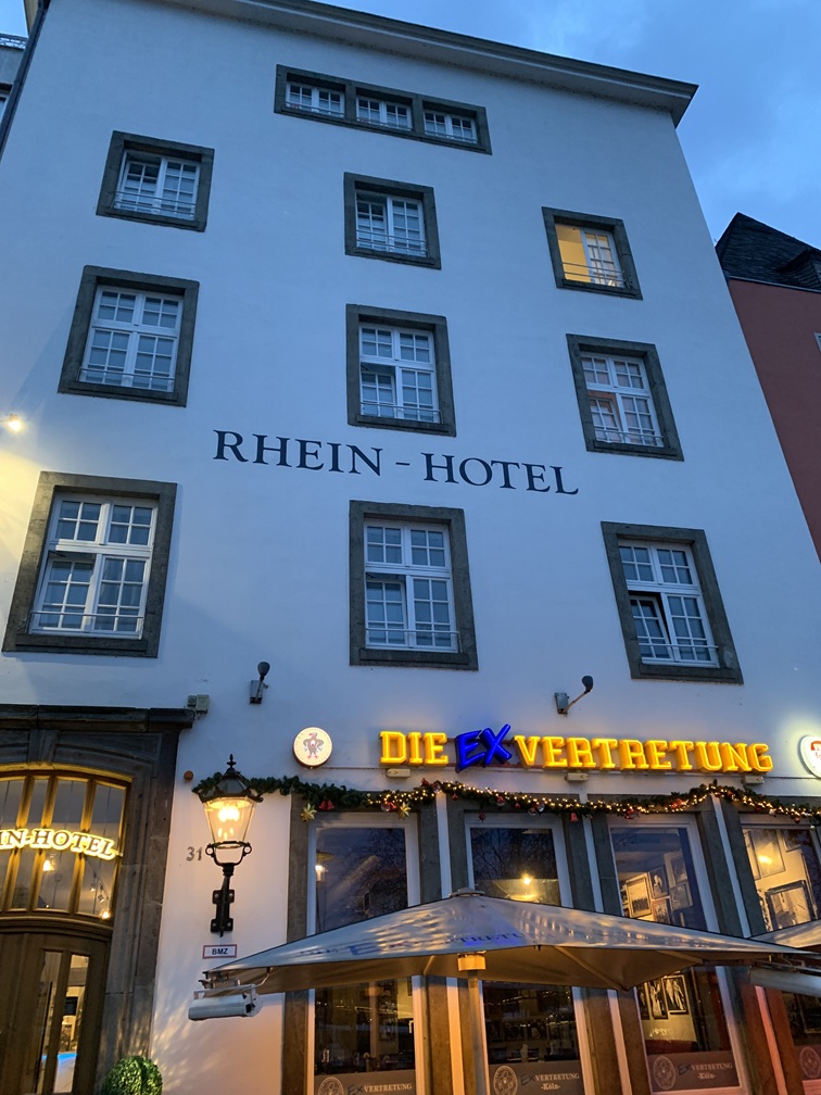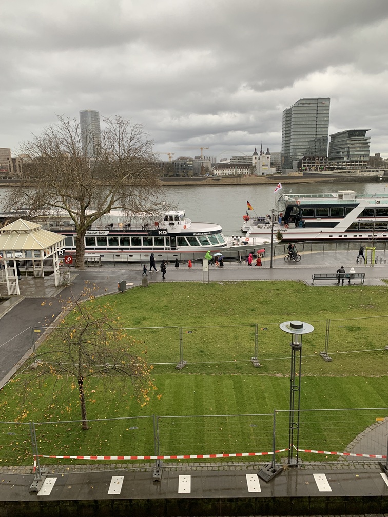 Maandag 8 december. Het laatste tripje van dit jaar brengt ons naar het Duitse Keulen, waar we in ieder geval de kerstmarkt(en) gaan bezoeken en wellicht een paar musea. We rijden (1e klas) met de ICE-trein in iets meer dan 2 uur rechtstreeks vanaf Utrecht Centraal naar Köln Hbh. en van daaruit is het ongeveer 15 minuten lopen naar het hotel. We hebben een kamer gereserveerd met uitzicht op de Rijn.