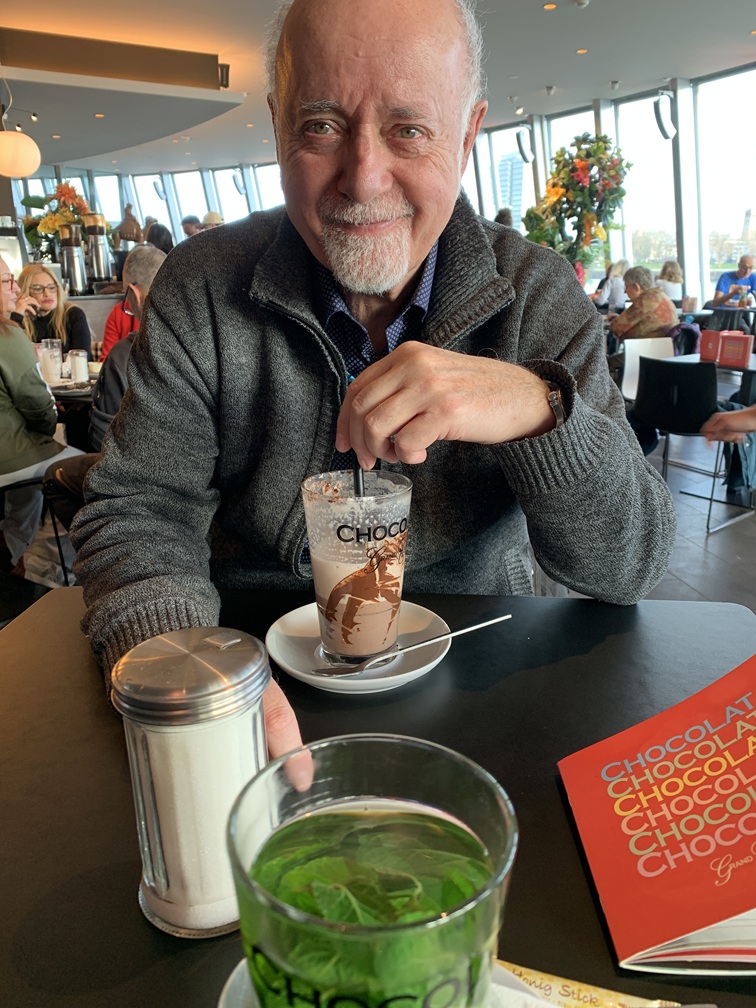 Op de terugweg zijn we nog ergens op de boulevard neergestreken voor thee en chocomel en zijn daarna teruggekeerd naar het hotel. De voetjes even rust gunnen want Lia's stappenteller stond al over de 10.000. Vanavond zijn we weer op tijd naar de eetzaal gegaan, zodat we weer een wijntje vooraf konden nemen (nu wél op kamertemperatuur). Het menu: tomatensoep, heek, aardappelpuree, warme tomaten en weer de saladetafel. Als toetje kregen we chocomousse. Het avondprogramma hebben we aan ons voorbij laten gaan.