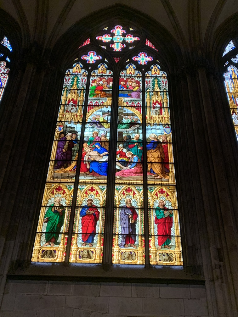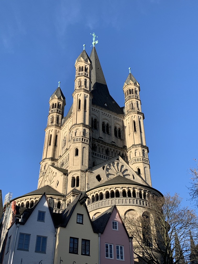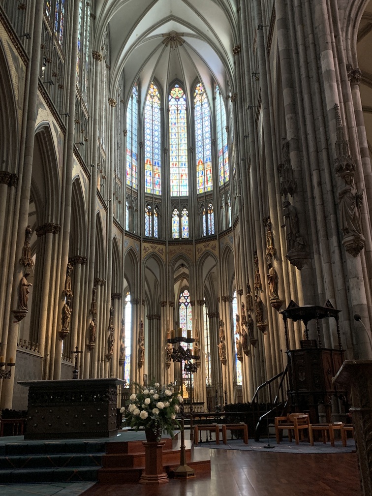 Woensdag 10 december. Onze eerste activiteit van vandaag was een bezoek aan de Dom van Keulen. De toegang tot de kerk is gratis, maar om de torens te beklimmen moet je wel betalen. Dat is aan ons echter toch niet besteed (veel te hoog en veel te veel traptreden). Het kerkgebouw zelf is overigens ook immens hoog, als je je voorstelt hoe hoog de gemiddelde kerk in Nederland is, dan staat er hier nog gewoon een kerk bovenop.