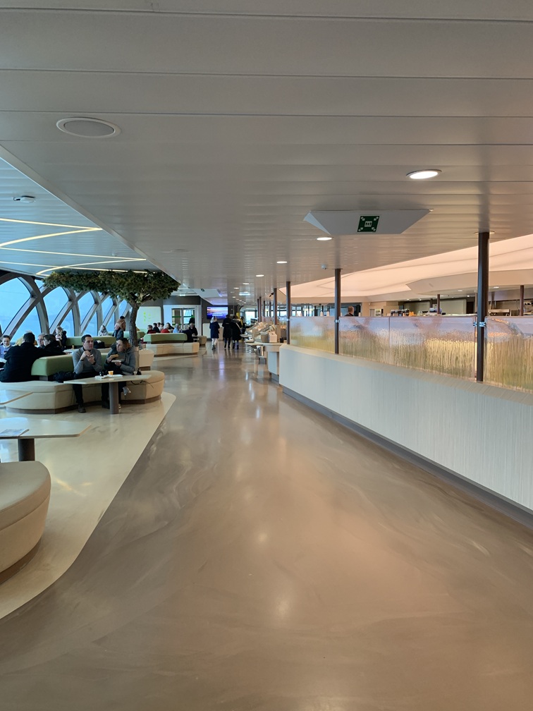 Maandag 3 november. Het hotel heeft (had) in maart en november altijd mooie aanbiedingen voor logies en ontbijt, waar wij al een aantal keer graag gebruik van hebben gemaakt. Misschien is dit de laatste keer, want wij hebben vernomen dat het is verkocht en of de nieuwe eigenaar die traditie voort wil zetten dat moeten we maar afwachten. We zijn vanmorgen al om 09:30 uur thuis vertrokken, maar door allerlei wegafsluitingen en omleidingen konden wij de veerpont van 11:30 uur niet halen. Gelukkig ging hij vandaag om het half uur, dus om 12:00 uur zijn we alsnog vertrokken. We waren intussen wél toe aan koffie en wat ons opviel was het volledig vernieuwde interieur van de restauratieruimte aan boord. Of was het misschien een heel nieuw schip...??