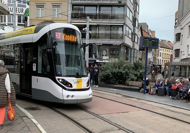 Woensdag 15 oktober. We hebben vandaag vrij vroeg ontbeten, want we wilden naar Oostende. Van het hotel hadden we gratis dagkaarten gekregen voor de Kusttram, met zijn 76 km en 67 haltes tussen Knokke/Heist en De Panne, de langste tramlijn ter wereld. Alhoewel de beschrijving van de tramlijn melding maakt van een adembenemend uitzicht op de zee, is daar op het traject tussen Blankenberge en Oostende helaas niet veel van te zien. Hij rijdt daar voornamelijk achter de duinen.
