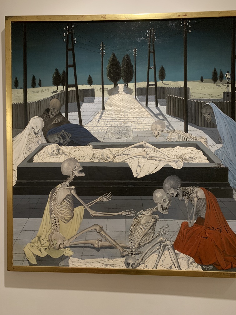 Uitgestapt bij de halte Oosteroever, hebben we 800 meter gelopen naar Fort Napoleon, dat in de loop van de geschiedenis vele oorlogshandelingen heeft doorstaan. Wij kwamen eigenlijk voor het verhaal van het fort, dat hebben we wél gehoord via de audiotour-apparaatjes, maar veel ervan gezien hebben we niet, omdat het fort net nú tijdelijk als decor fungeerde voor de fototentoonstelling Biënnale 2025. Na het fortbezoek terug te tram in en verder naar de halte Marie-Joséplein, waar we eerst geluncht hebben bij Brasserie Cheers en vervolgens op zoek zijn gegaan naar het James Ensorhuis. Ensor (1860-1949) was een kunstschilder en een belangrijke vernieuwer van de moderne kunst in België. Hij groeide op in een souvenirwinkel, die nu nog steeds bestaat als onderdeel van het huis/museum dat wij vandaag hebben bezocht. Hij schilderde veel mensen met doodshoofden en maskers op. Na het museumbezoek hebben we de tram weer opgezocht maar, ondanks dat wij meenden een hop-on-hop-off dagkaart te hebben werden onze passen geweigerd bij het inchecken. Vermoedelijk heeft het hotel ons niet de beloofde dagkaarten gegeven, maar slechts retourkaarten voor 2x inchecken. We zijn dus illegaal terug naar Blankenberge gereden, maar gelukkig hebben we geen controleur gezien. Het avondeten bestond vandaag uit bloemkoolsoep, kipfilet, krieltjes en de inmiddels bekende saladebar. Na het eten zijn we naar de bingo-avond gegaan, twee gratis rondes gespeeld, maar geen prijs gewonnen.