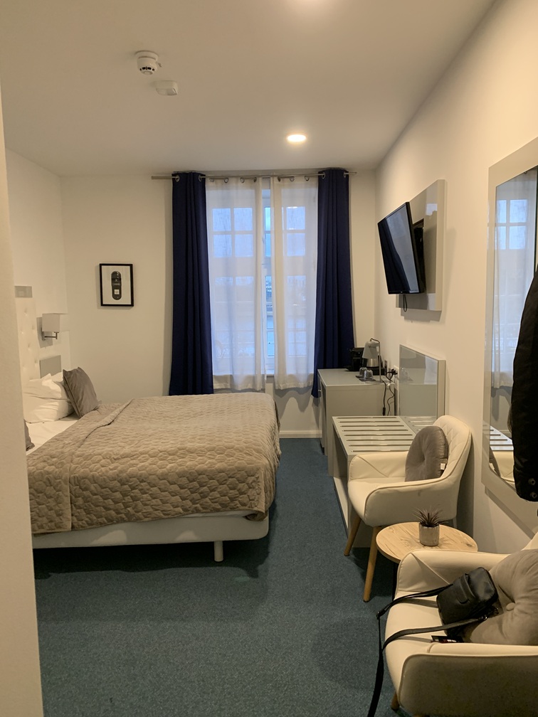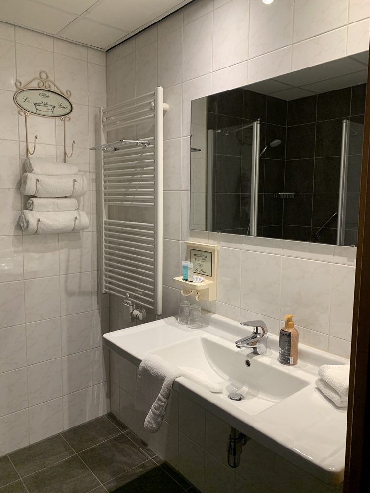 Wij sliepen dus in Paradiso/Noordzee en daar was wel het nodige op aan te merken. De kamer was extreem klein, elkaar passeren was nauwelijks mogelijk en in een hoek hing een plank aan de muur (bij wijze van bureautje) met twee houten stoelen, die je steeds moest verschuiven om er voorbij te kunnen. Het bed lag wel lekker, maar was veel te laag, wat de in- en uitstap erg ongemakkelijk maakte. Er was ruim voldoende (veel te veel eigenlijk) kastruimte én een kluisje. Vooral de badkamer was echt niet goed!!. Zonder hier in details te willen treden, hebben we die het laagst mogelijke cijfer gegeven bij de beoordeling. Klagen bij de receptie kon niet, want die was vrijwel de hele dag onbezet, maar of het wat uitgehaald zou hebben, dat betwijfelen wij, want van andere hotelgasten hoorden wij soortgelijke klachten. Tot zover het hotel.