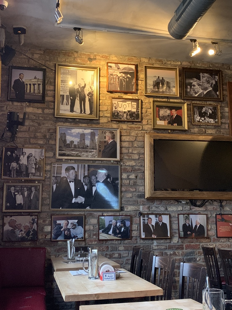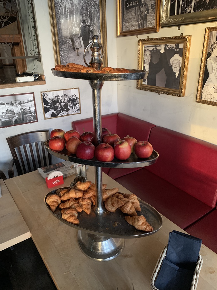 Dinsdag 9 december. De matrassen leken aanvankelijk wat hard, maar we hebben daar toch geen hinder van gehad, wél heeft Wal geworsteld met het hoofdkussen. Lia heeft daar geen last van, want die neemt altijd haar eigen kussen mee van thuis. Vanmorgen scheen de zon en de dag begon voor ons met zo'n 12º, in de loop van de dag is het wel opgelopen naar +15, misschien wel 16º. Heerlijk weer dus. Het hotel serveert zelf geen ontbijt maar bij het restaurant Ex-Vertretung, dat in hetzelfde gebouw zit, krijgen we, als hotelgasten, tussen 07:00 en 10:00 uur gratis koffie, thee, een croissantje, een stukje fruit en geschiedenisles in de vorm van foto's aan de muur van historische politici.