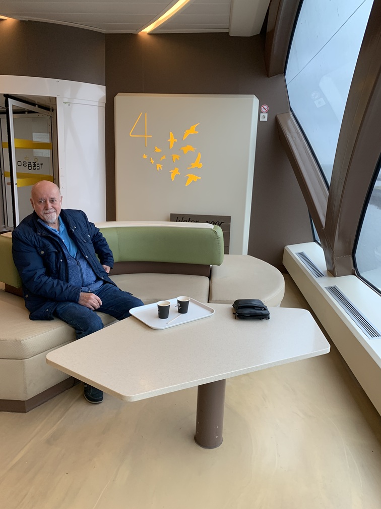 Maandag 3 november. Het hotel heeft (had) in maart en november altijd mooie aanbiedingen voor logies en ontbijt, waar wij al een aantal keer graag gebruik van hebben gemaakt. Misschien is dit de laatste keer, want wij hebben vernomen dat het is verkocht en of de nieuwe eigenaar die traditie voort wil zetten dat moeten we maar afwachten. We zijn vanmorgen al om 09:30 uur thuis vertrokken, maar door allerlei wegafsluitingen en omleidingen konden wij de veerpont van 11:30 uur niet halen. Gelukkig ging hij vandaag om het half uur, dus om 12:00 uur zijn we alsnog vertrokken. We waren intussen wél toe aan koffie en wat ons opviel was het volledig vernieuwde interieur van de restauratieruimte aan boord. Of was het misschien een heel nieuw schip...??