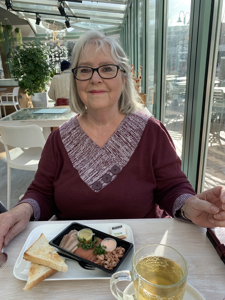 Woensdag 18 juni. Onze 49e huwelijksverjaardag begon zonnig en warm, maar in de loop van de middag werd het toch wat bewolkt en stak er een windje op. We hebben onszelf vanmorgen op een gebakje getrakteerd voor bij de koffie, maar daarna was het een dag zoals alle andere.