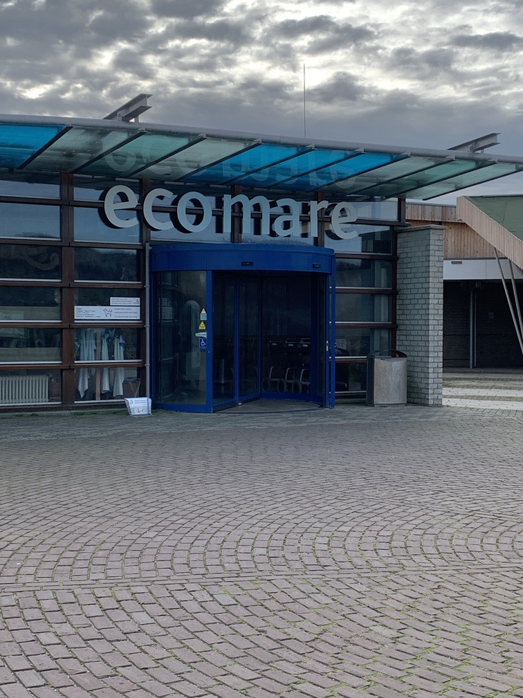 Na de wandeling hebben we de fietsen weer gepakt en zijn naar Ecomare gereden. Daar waren we al eens eerder geweest, maar in onze herinnering meer dan 10 jaar geleden. Er worden nog steeds zeehonden opgevangen en verzorgd en sommige blijven daar voorgoed omdat ze niet meer "in het wild" kunnen overleven. Met ons bezoek helpen we dan toch weer een beetje met de financiering daarvan. Er zitten daar overigens niet alleen zeehonden, maar ook (al dan niet besmeurde) watervogels en allerlei exotische zeedieren (haaien, roggen, garnalen, enz.) in een aquarium. Natuurlijk hebben we ook even gekeken bij het voederen.