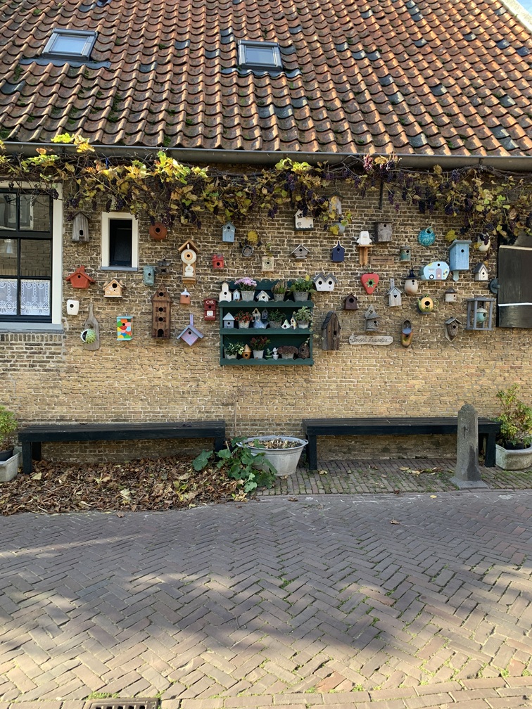 Woensdag 5 november. Vandaag was het prima fietsweer en dat hebben we dan ook gedaan. Vanmorgen om 10:15 uur zijn we al vertrokken. We zijn naar het zuiden toe begonnen (tegen de wind in), tot ruim voorbij Den Burg. Waar we in de verte al de veerhaven zagen liggen, zijn we afgeslagen richting Oudeschild. Lia had daar vooraf een leuke winkel gezien, die we vandaag hadden willen bezoeken, maar helaas ter plekke niet hebben gevonden. We hebben koffie gedronken bij De Oude Vishal. Die moesten we zelf tappen uit een koffiemachine en daarbij hebben we flink geworsteld met de pinautomaat. Uiteindelijk zijn er 3 bedragen afgeschreven en 1 teruggestort, zodat het tóch goed is gekomen. Na de koffie zijn we weer opgestapt, richting Oosterend. Na enige tijd in de goede richting gereden te hebben, draaide het fietspad weg van de doorgaande weg en werden we een flink eind omgeleid. Uiteindelijk zijn we toch in Oosterend aangekomen en na een fotootje te hebben gemaakt van een muur met vogelhuisjes, hebben we geluncht bij Het Cafeetje. Daarna hebben we de fiets weer gepakt en, in de richting van De Cocksdorp, zijn we langs de IJzeren Kaap gekomen en verder over de dijk met uitzicht op de Waddenzee bij eb. Het uitkijkpunt De Robbenjager was niet wat wij er ons van hadden voorgesteld. Via de vuurtoren zijn we daarna in het dorp gestopt voor een wijntje bij Meneer de Cock. Tenslotte hebben we het rondje Texel afgemaakt door via de fietsroute langs de duinen, de Slufter en de Muy terug naar De Koog te rijden. We zijn ongeveer 6 uur onderweg geweest en hebben 55 km. gefietst, een record voor ons !!!.![]()