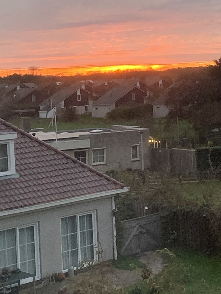 Donderdag 6 november. Ook vandaag scheen de zon weer. We zijn wat vroeger opgestaan en zagen dan ook nog net de zonsopgang. We hebben de laatste spulletjes bij elkaar gezocht en konden zodoende de koffers nog vóór het ontbijt dichtritsen. Om 10:15 uur zijn we vertrokken en waren wel wat te vroeg bij de veerhaven. De overtocht duurt maar een klein halfuurtje en de thuisreis is, behoudens een korte file op de A9, ook vlotjes verlopen.
